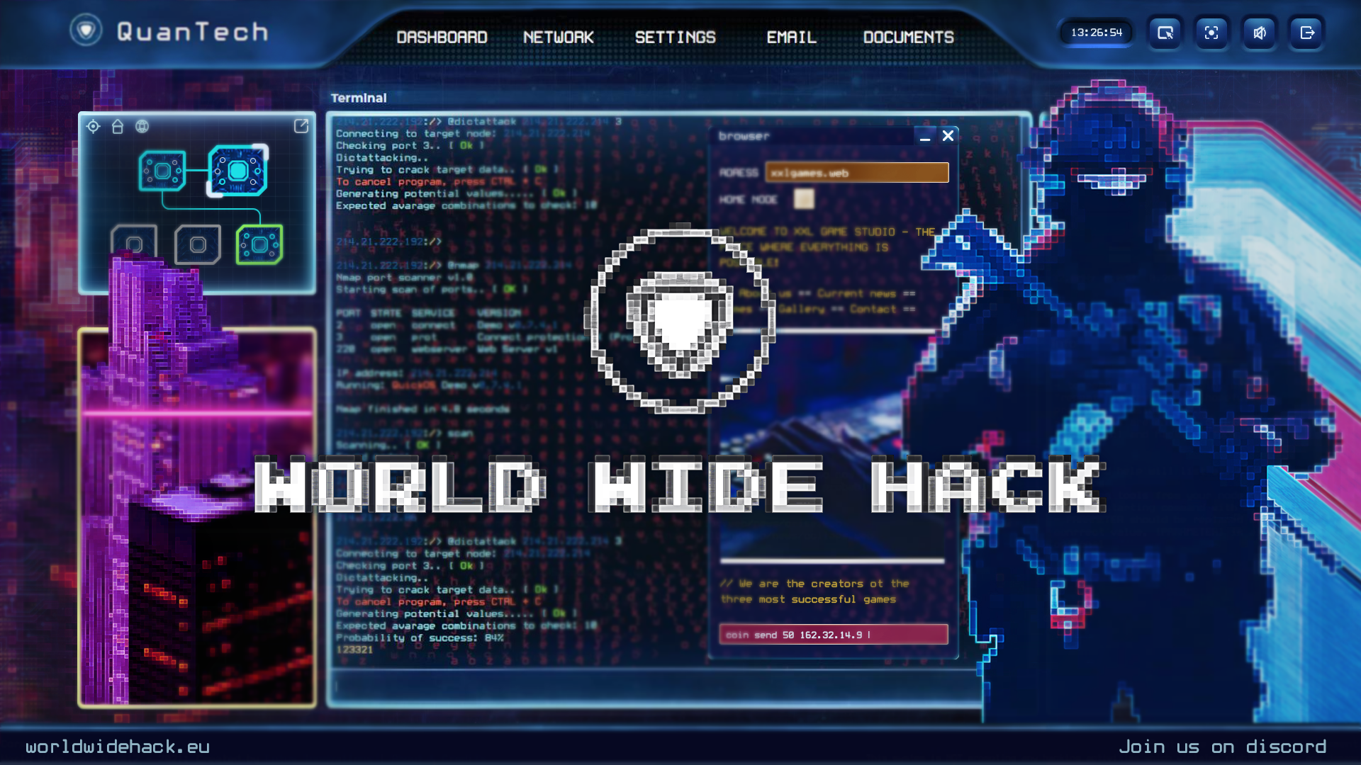 World Wide Hack is an MMO simulation game about realistic hacking and cybersecurity with a dynamic story set in the open world. Solve hacking puzzles, complete quests and compete or join forces with friends in a fight for control. Use tools, stealth, strategize and hack fast to manipulate the world.